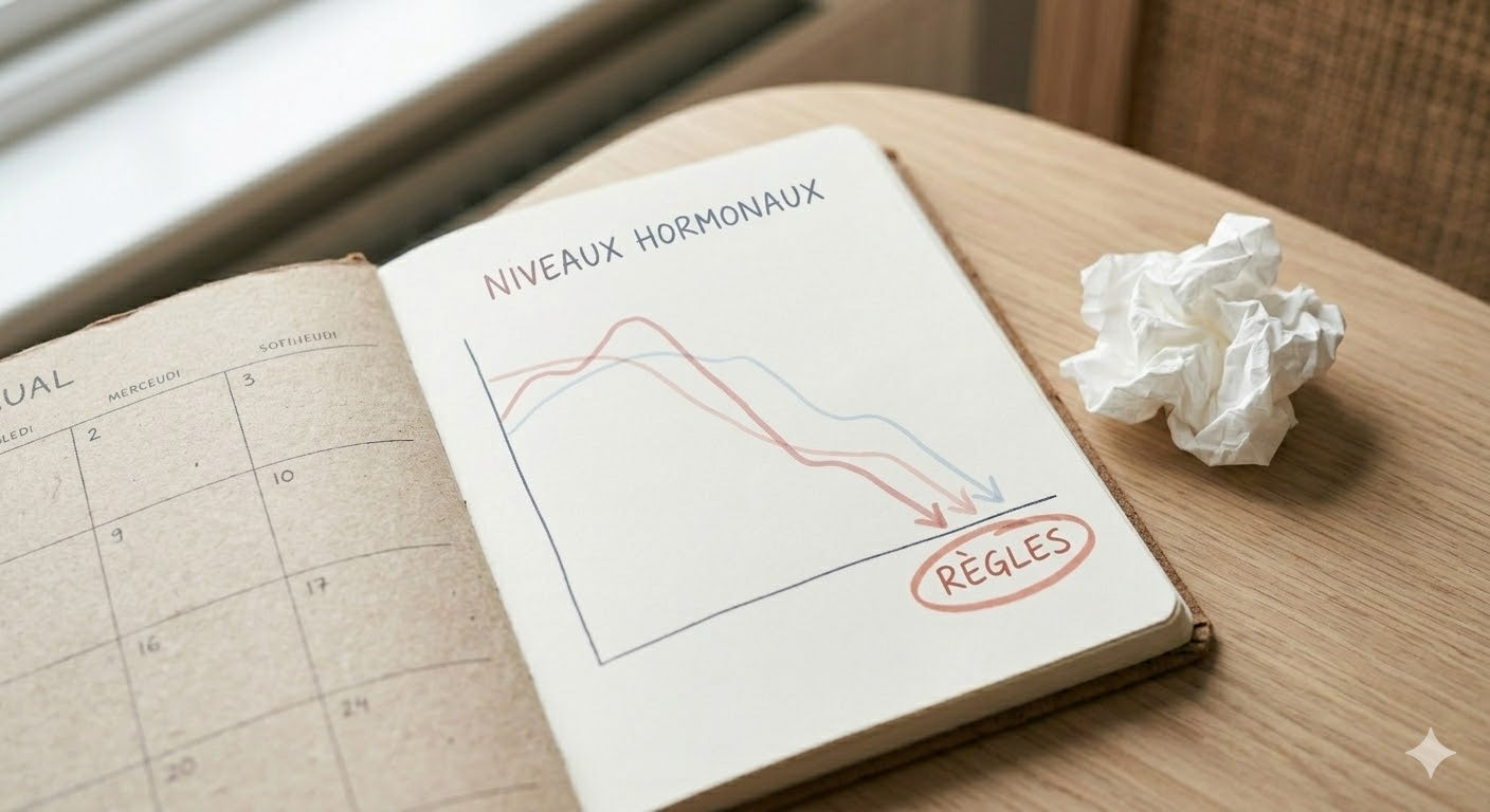 Le SPM survient durant la phase lutéale (après l'ovulation). À ce moment-là, si aucune grossesse n'a débuté, vos taux d'oestrogènes et de progestérone chutent brutalement.